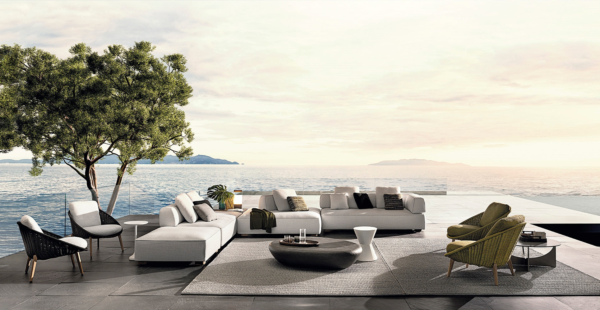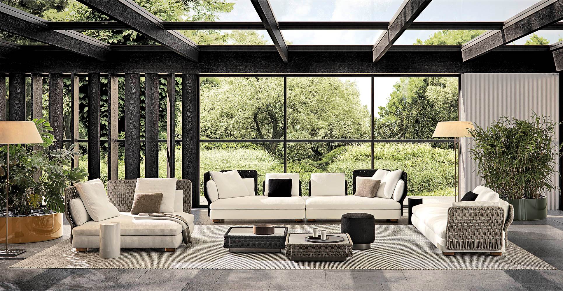 cushions and backrests in premium white faux fur fabric for ultimate softness and a luxurious tactile experience.